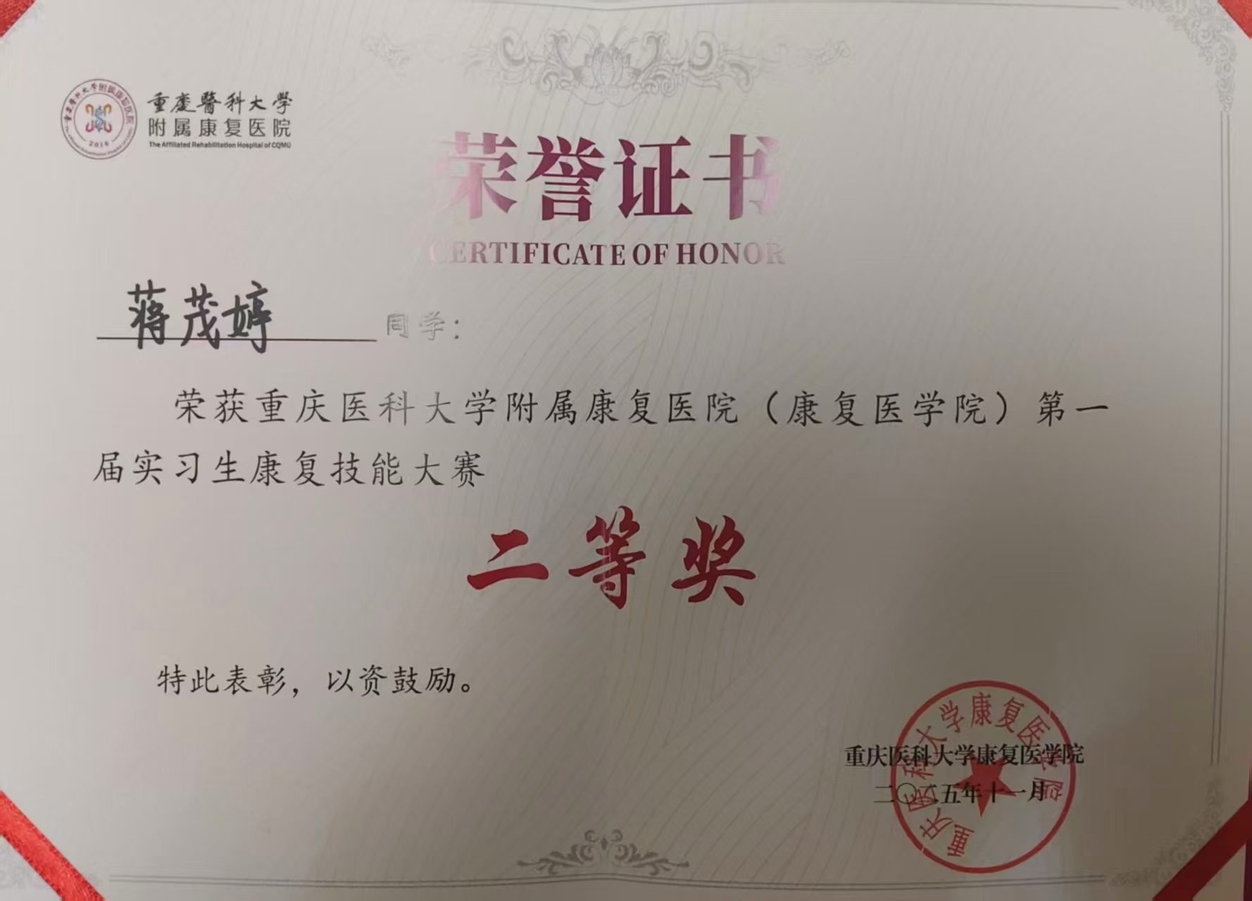 近日,从重庆医科大学附属医院(康复医学院)传来喜讯。在该院举办的第一届实习生康复技能大赛中,我校2023级康复治疗技术专业学生熊乙滟、蒋茂婷、唐菽荟组成的团队,凭借扎实的专业技能、严谨的临床思维和出色的团队协作,在众多参赛的研究生、本科生中脱颖而出,荣获大赛二等奖,展现了我校学子不凡的实力与风采。