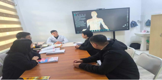 交流中,阿奇兹・萨里波夫院长首先分享了乌兹别克斯坦针灸医学的发展现状:近年来,针灸因 “安全、高效、副作用小” 的特点,在当地疼痛治疗、慢性病调理等领域应用日益广泛,但仍面临 “专业人才短缺”“临床规范待完善”“民众认知需提升” 三大挑战。他结合中心案例,详细介绍了针灸在腰椎间盘突出、脑卒中、关节炎等病症中的临床应用方案,展示了中心的 “针灸穴位定位辅助工具”,有效提升了针灸操作的精准度。