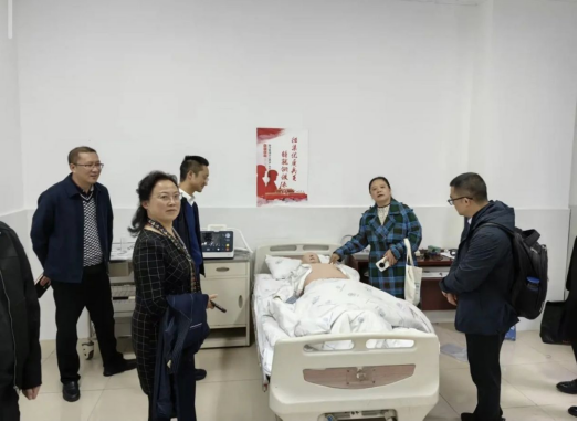 典礼结束后,学院领导与医院相关负责人为下一步课程改革前往医院临床技能中心进行实地调研,深入了解实践教学平台的建设情况以及学生实训进展。医院副院长吴亮君表示,未来医院将持续投入资源并优化实践教学条件。