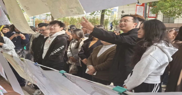 活动现场洋溢着热烈和谐的氛围,各类风格迥异,严谨精密的绘图精彩呈现。老师、同学们也不时驻足讨论,探讨其中的结构奥妙与艺术呈现,形成“以赛促学、以学促思”的良好互动氛围。