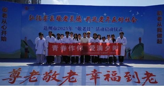 10月27日上午,达州市“弘扬孝亲敬老美德,共建老年友好社会”敬老月活动启动仪式在人民广场隆重举行,本次活动由达州市人民政府主办,市民政局、市文体旅游局、市卫生健康委等多部门承办。学院组织中医专业师生参加本次活动,并以“情暖重阳,中医护老”为主题,为广大老年群众带来专业的中医诊疗与养生服务,现场反响热烈。