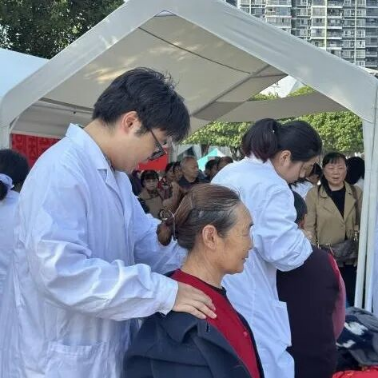 临床医学院教师涂江、马小雯带领20余名学生志愿者,在义诊体验区现场为老年群众免费提供多项中医治疗与养生服务。活动尚未开始,等候区已排起长队,不少市民提前到场,期盼体验中医传统疗法。随着活动正式启动,现场更是人头攒动,中医养生体验及文化展览等环节备受关注,群众踊跃参与,沉浸在中医疗法与养生文化的浓厚氛围中。
