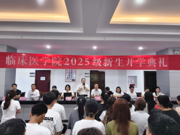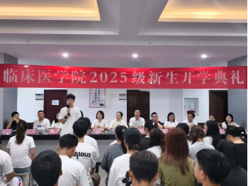 临床医学院党总支副书记柏涛围绕树牢安全防线、强化心理疏导、明晰入党路径三个维度与新生共勉。他殷切寄语学子,要把"排难创新,智勇坚定,团结一致,不胜不休"的十六字红军精神内化为大家在学医、行医过程中攻坚克难的精神动力,铭记"健康所系,性命相托"的医学誓言 —— 既要脚踏实地筑牢安全根基,精研专业本领;亦需仰望星空树立远大理想,笃行政治追求。