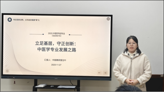 本次活动吸引了6位课程负责人和2位专业带头人参与展示。说课程环节中,杜婧老师系统阐述了《传染病学》的课程思政设计与临床实践融合路径;贾秀丽老师从临床思维培养角度深入解析《诊断学》教学创新;吕莎莎老师以生动的案例分析展现了《妇产科学》课程的人文关怀特色;李璐老师突出《口腔修复工艺》的理实一体化教学模式;魏丽老师强调了《儿科学》教学中的医患沟通技巧培养;雷雯阳老师则分享了《外科护理学》的模拟教学实践经验。说专业环节,左叶老师围绕“传承创新”主线,系统论证了中医学专业的特色发展之路;杨鹏老师从岗位胜任力出发,全面梳理了临床医学专业建设成效。刘梅副院长代表学院层面,以详实数据支撑,全方位展示了临床医学院在人才培养、师资建设、实践教学等方面的综合实力。